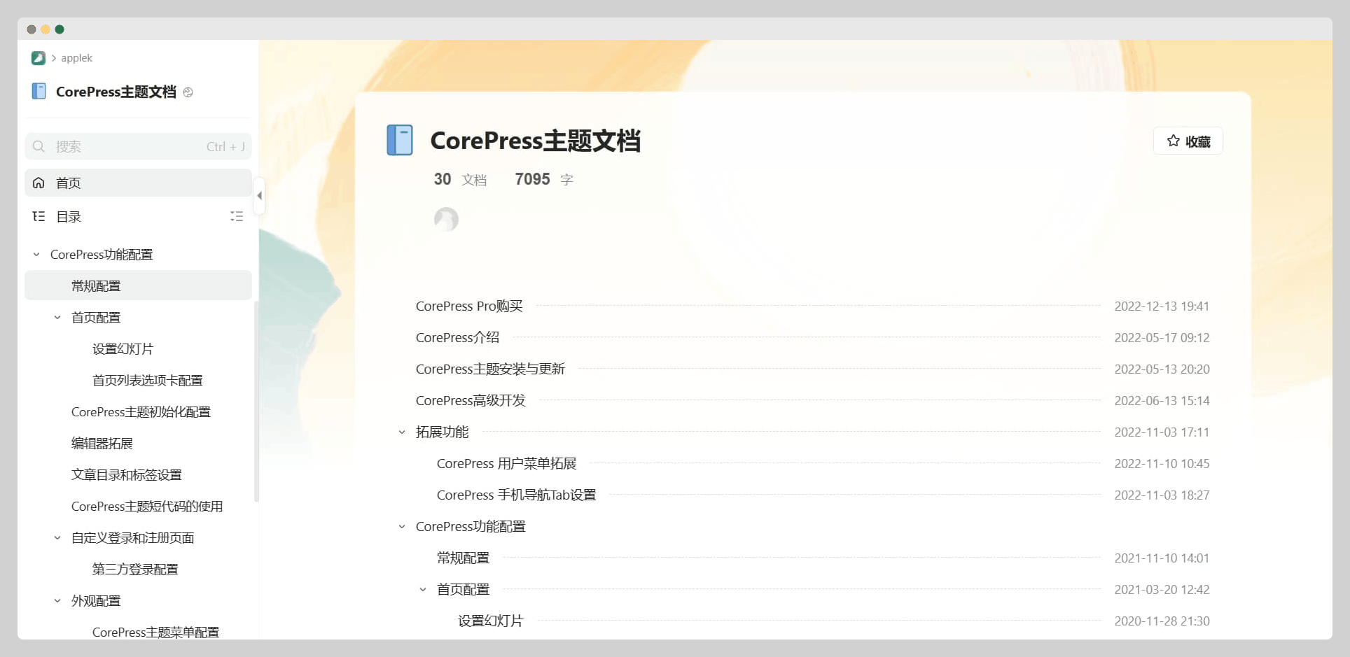 主题文档:https://www.yuque.com/applek/corepress