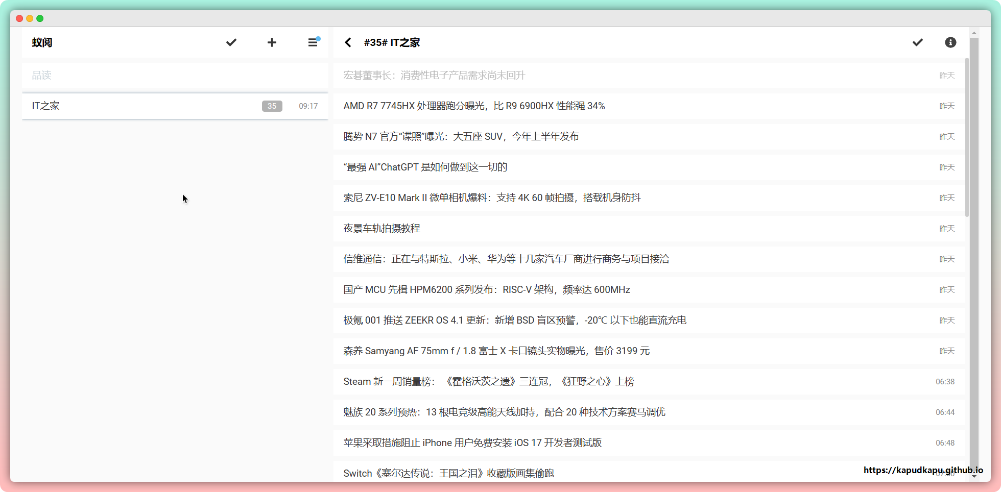 RSS阅读器,让RSS更好用,轻松订阅你喜欢的博客和资讯。界面简洁,上手简单,阅读体验不错。