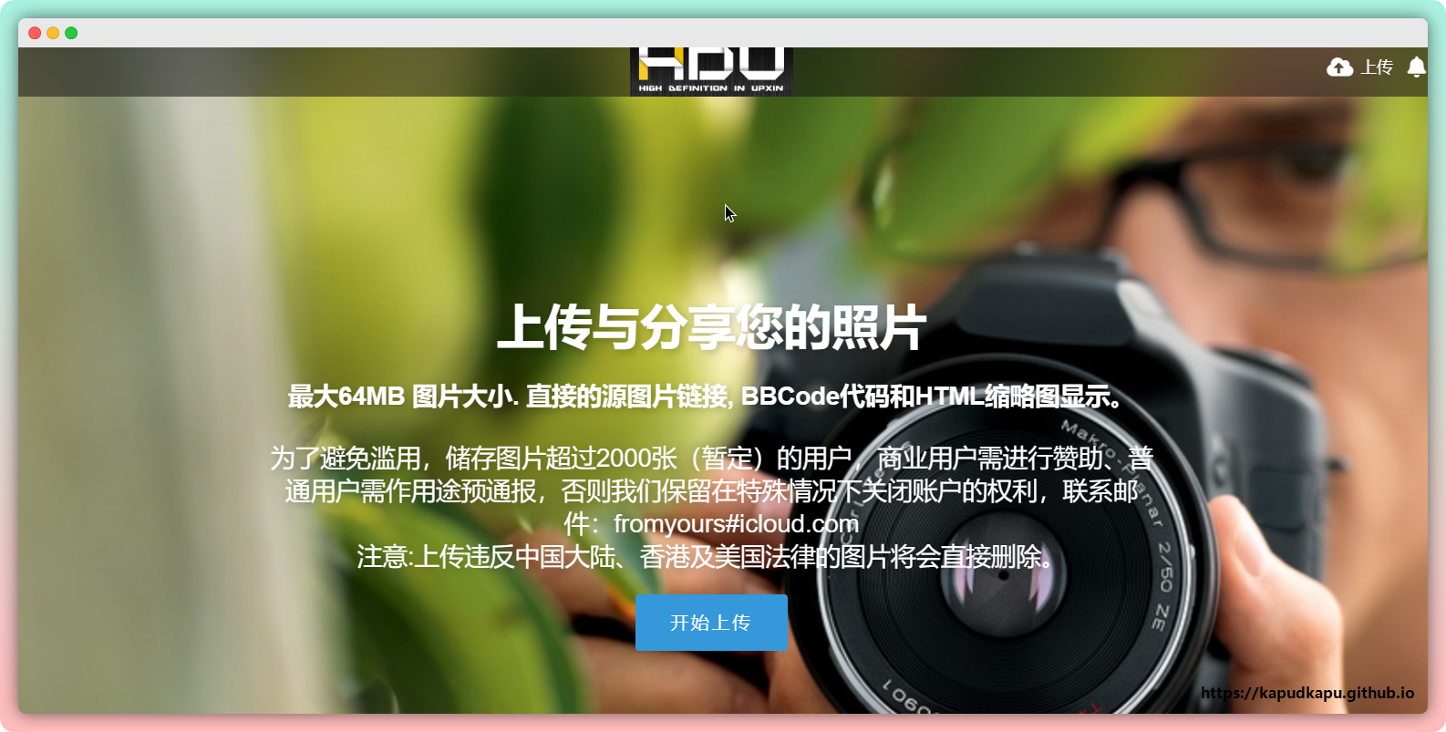 比较老牌的免费图床服务,稳定性不错,现在需要注册才能上传。文件不能超过10M,单次最多支持9张。免费用户450张/月,vip每月可上传3000-10000张;