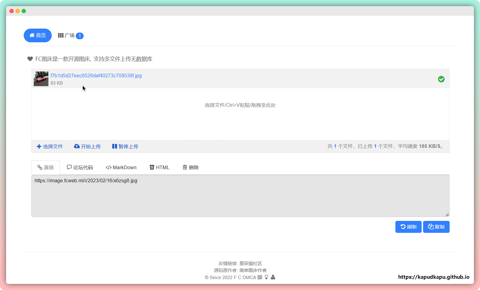 页面很原始,纯游客上传,无登录注册功能,只能单个上传,标注最大5M,实测超过也能上传。可提取直接的源图片链接。