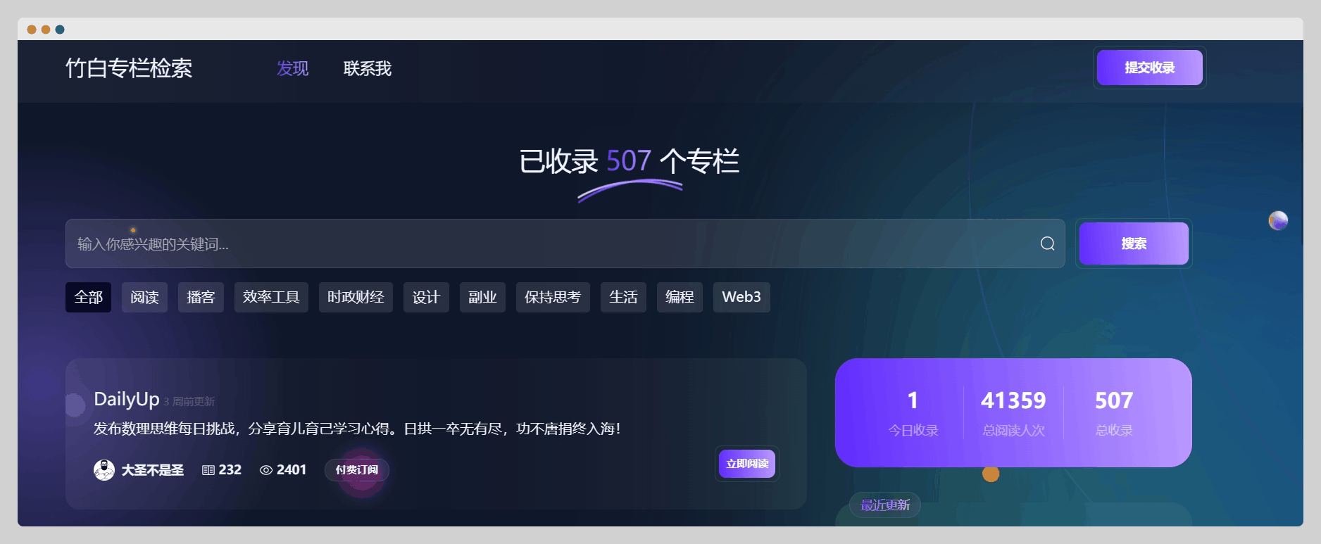 用于检索竹白高质量专栏的工具,已收录 507 个专栏。