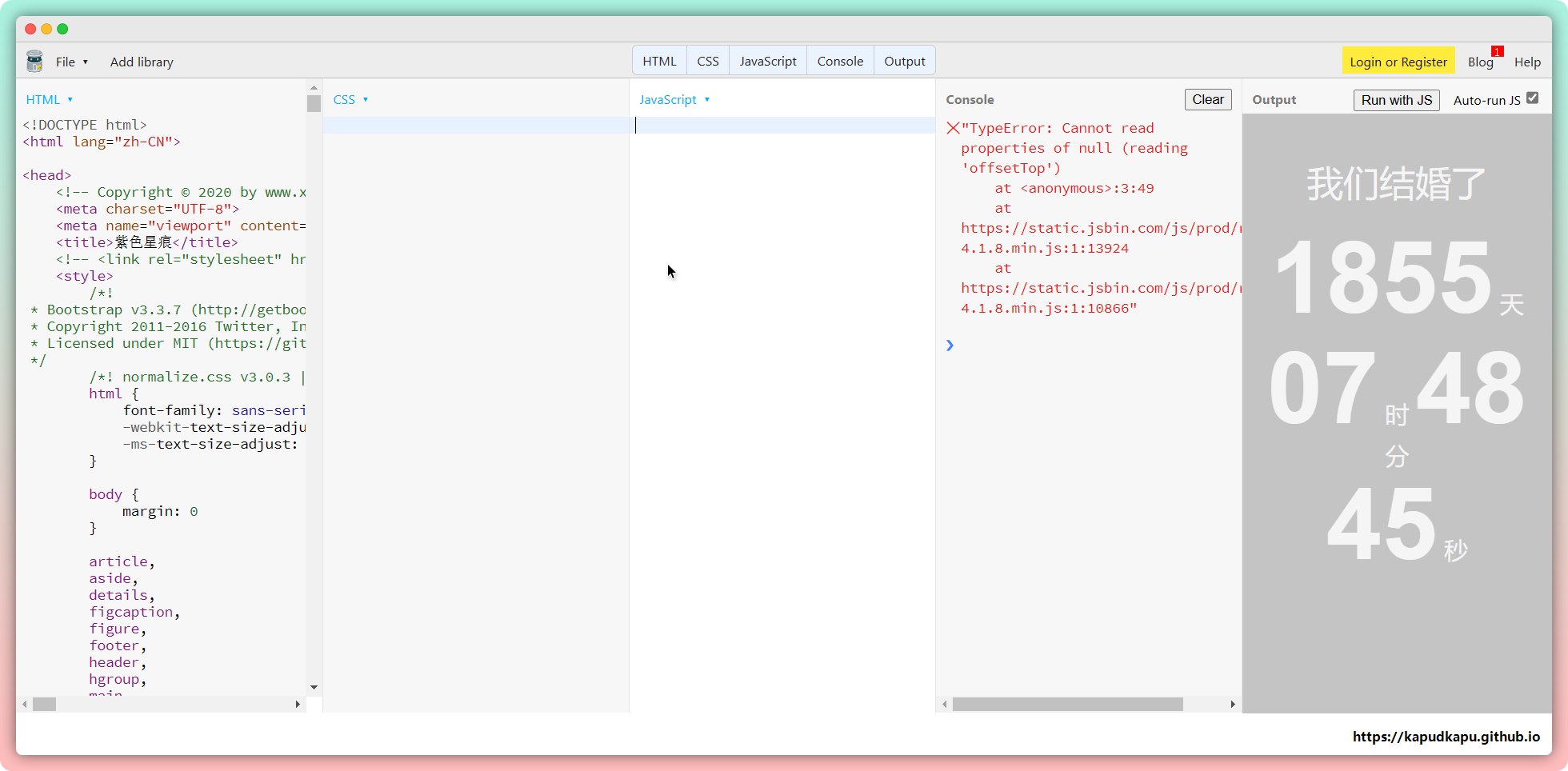 一款超强的在线html编辑器,支持html、markdown、css、scss、JavaScript等,支持设置显示几栏,免刷新实时展示,自带console。