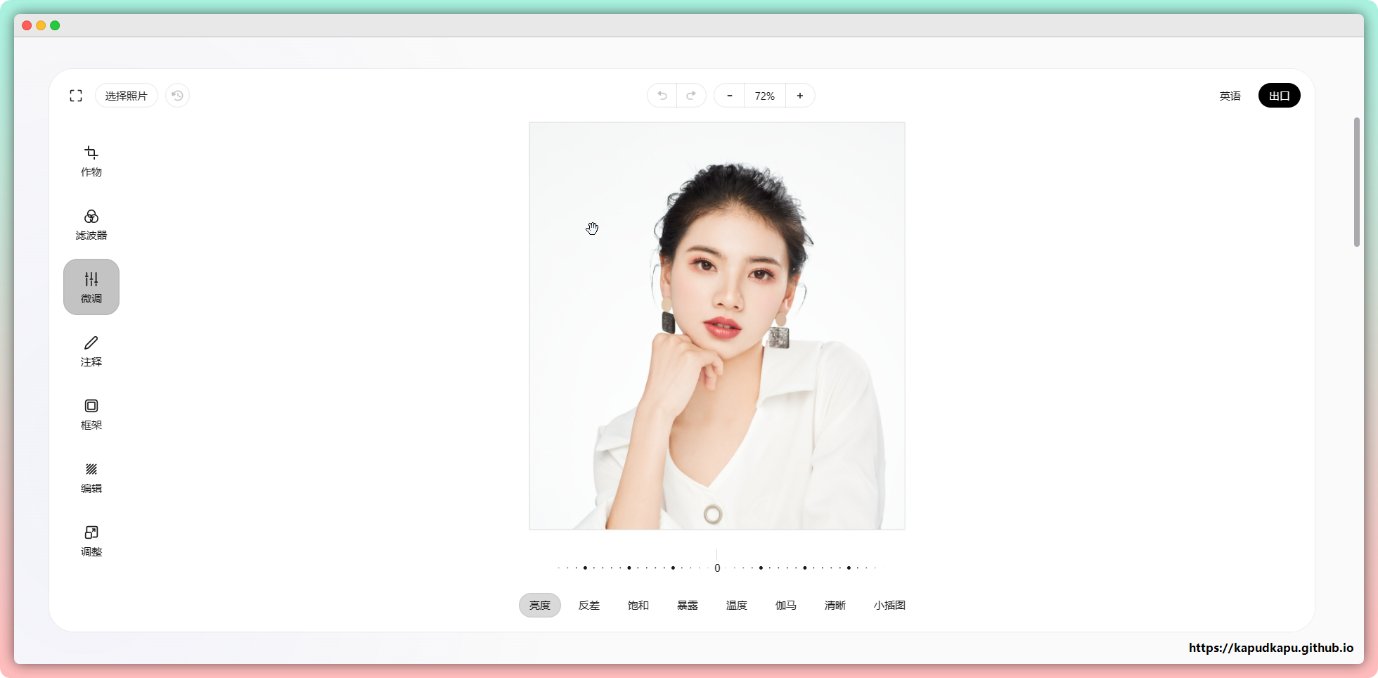 在线图片编辑站点,都是基础的功能,裁剪、滤镜、亮度、饱和度、色温、标注、边框、马赛克等。