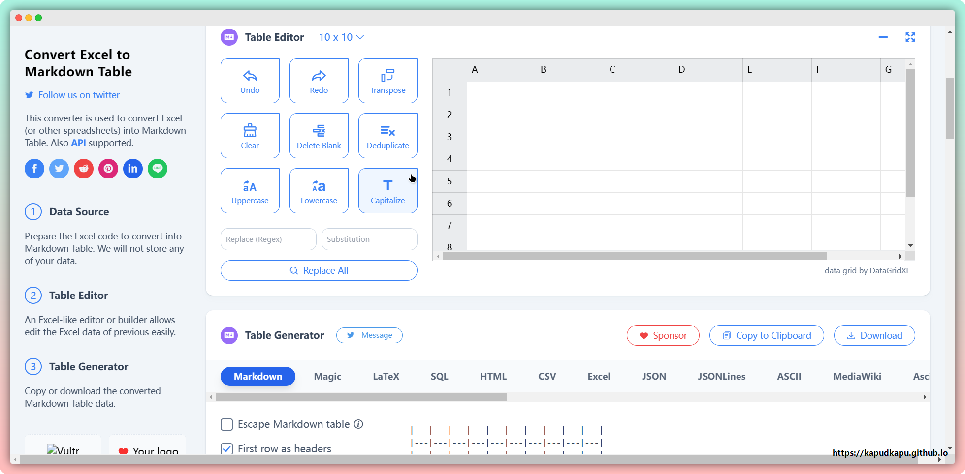 这是一个超强的在线转换表格的网站,支持的格式超多,各种格式的数据相互转换。SQL、html、csv,markdown表格、json等等等等。