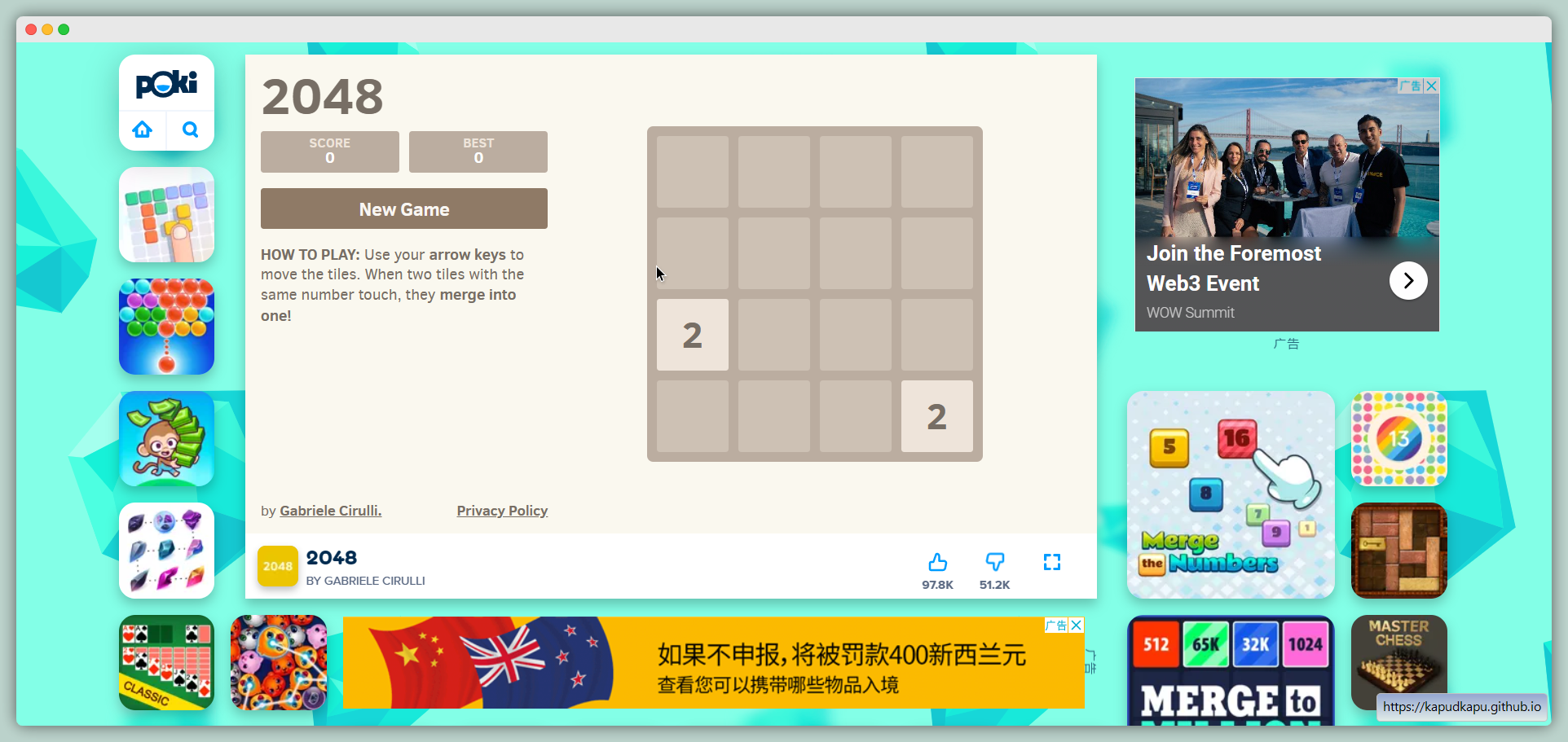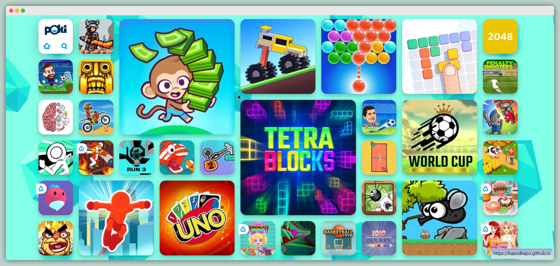 在线小游戏,英文站点,都是国外的游戏,但是看不懂英文也不影响游戏。数量不少,闲来无事可以玩玩,两端体验都不错。
