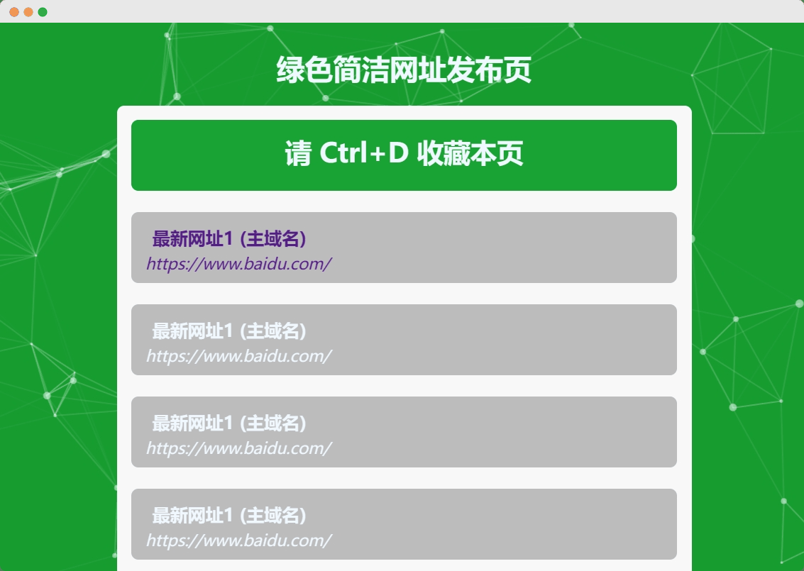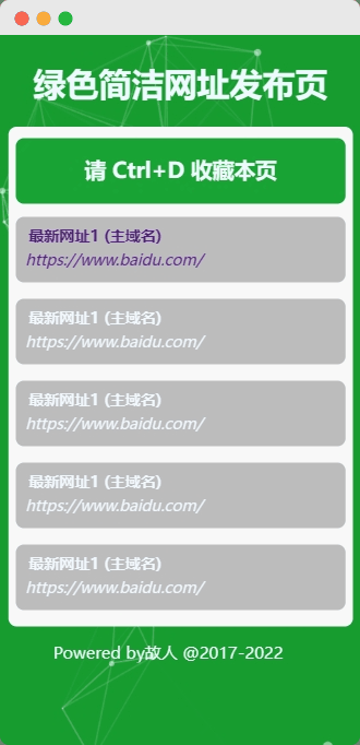 两款绿色自适应地址发布页,整体差不多,具体风格自选,都是单页html文件,直接修改为自己的内容即可。