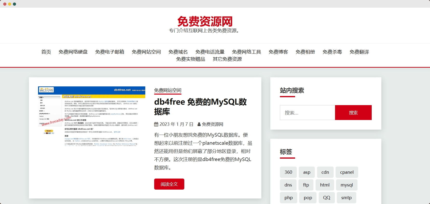 免费资源网专门收集互联网上各类免费资源服务,包括免费空间、免费域名、免费网盘和云存储、免费邮箱、免费相册,免费电话手机流量、免费实物赠品等信息。在免费资源网可以找到你想要的各类免费信息。