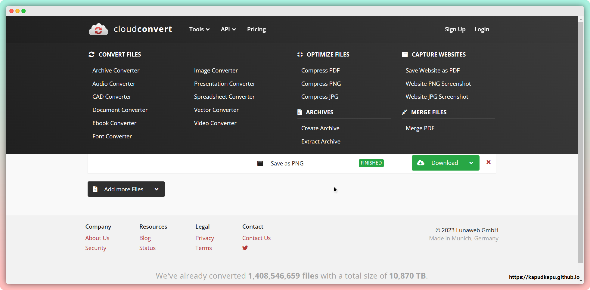免费提供各种格式文件转换,免费下载,电子书、图片、PDF、视频、声音等,甚至还有网页截图。