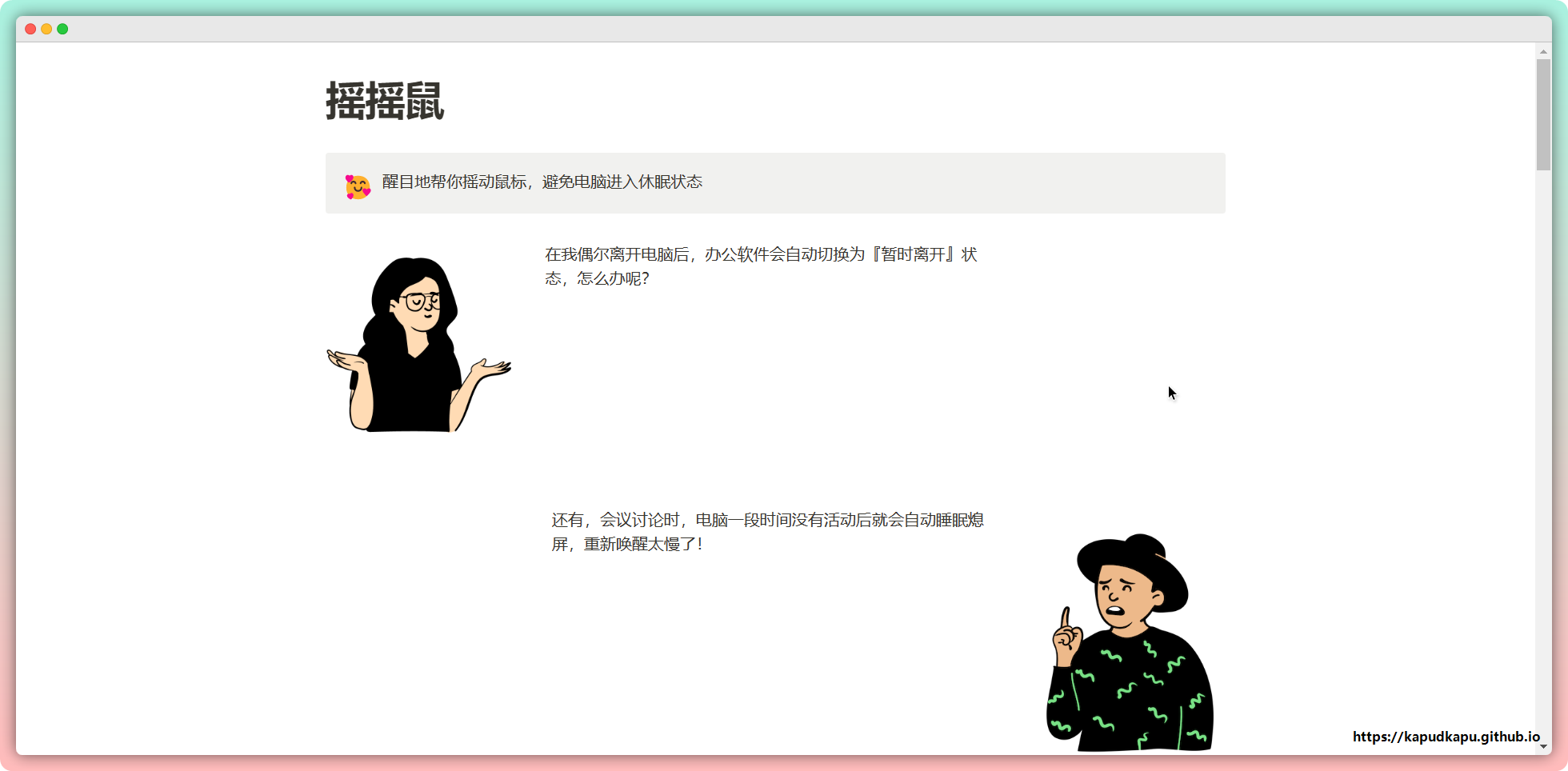醒目地帮你摇动鼠标,避免电脑进入休眠状态。
