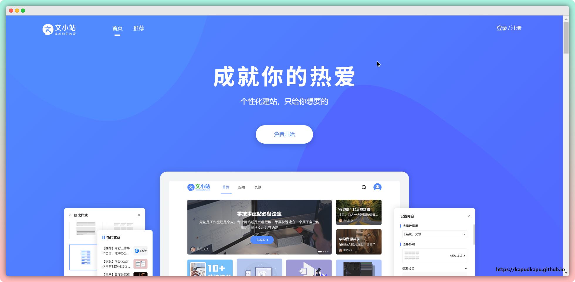 文叔叔旗下的免费建站平台,可搭建免费博客或个人网站等。