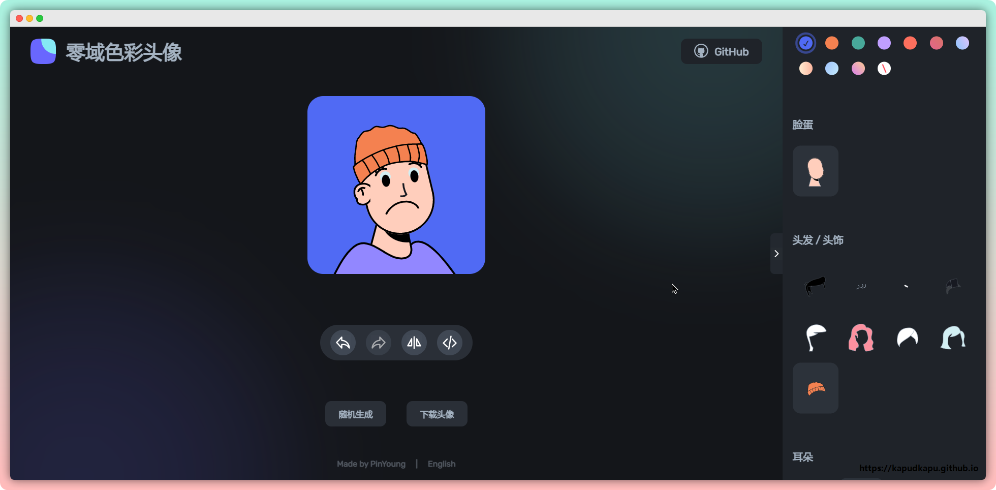 生成头像工具,免费下载成品,支持调整头像形状、背景色、脸型、颜色、头发、耳朵、眼睛、鼻子等等。