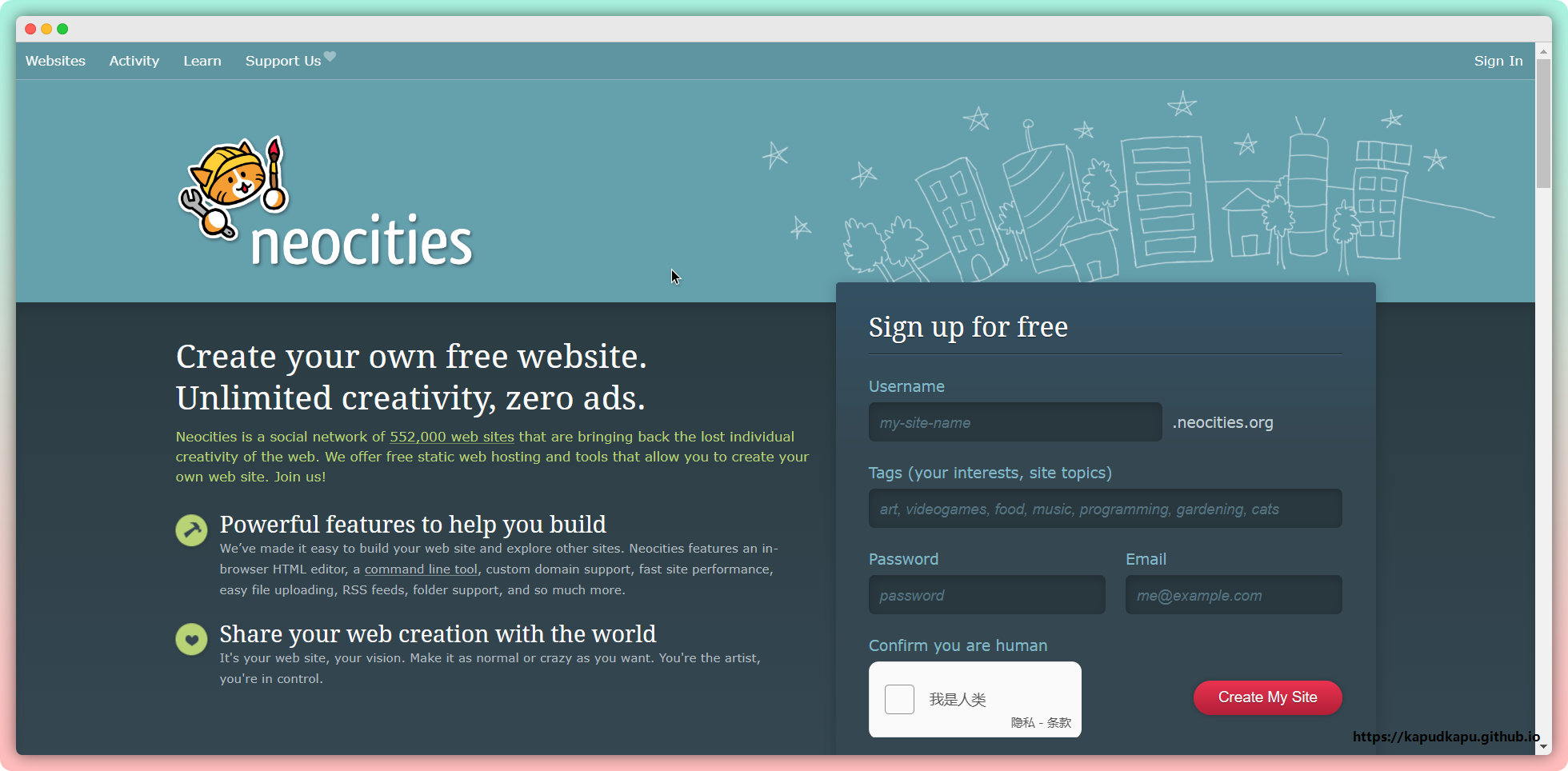 一个提供免费静态页面托管服务的平台,注册免费二级域名,上传托管自己的静态页面。