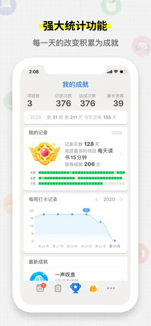 - 成就记录:让你看到每一天自己的成就,更加鼓舞;