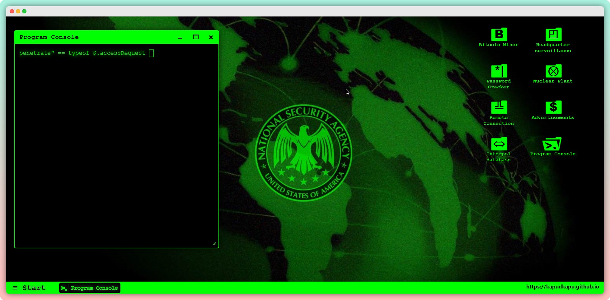 浏览器模拟黑客桌面,电脑全屏下效果最佳。