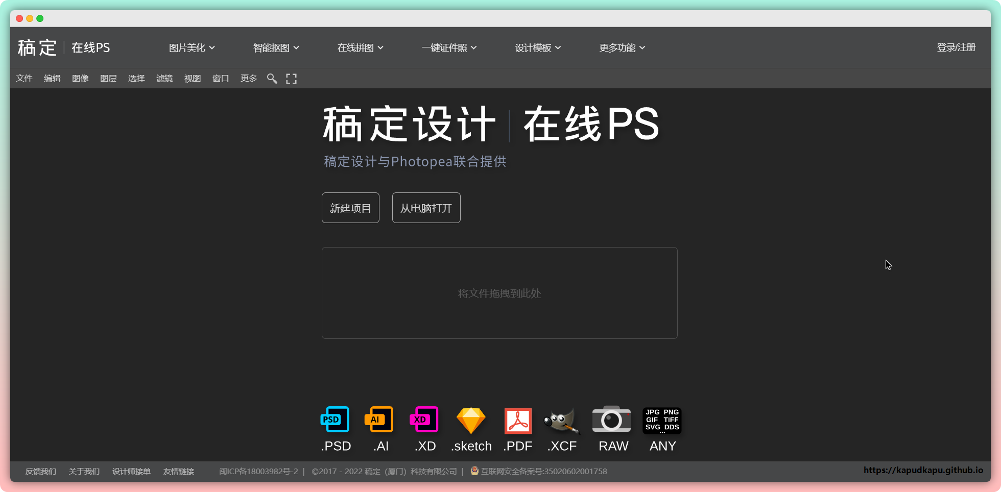 搞定设计出品的在线ps,功能无差别,导出需注册,稿定设计还有好多其他工具可以一起体验。