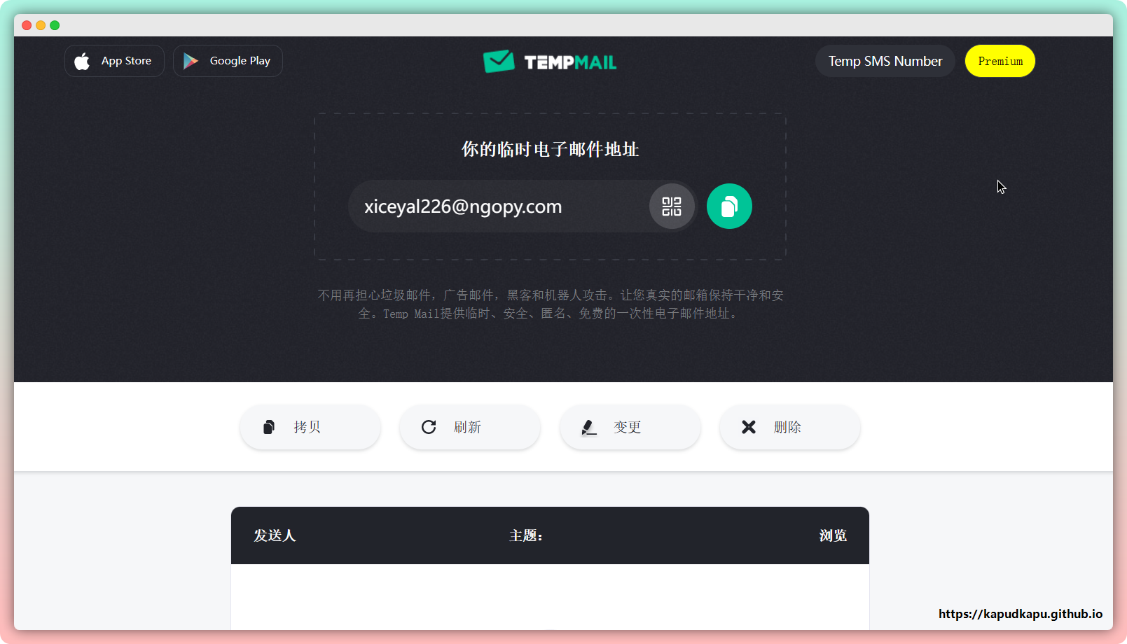 地址:https://temp-mail.org/zh/