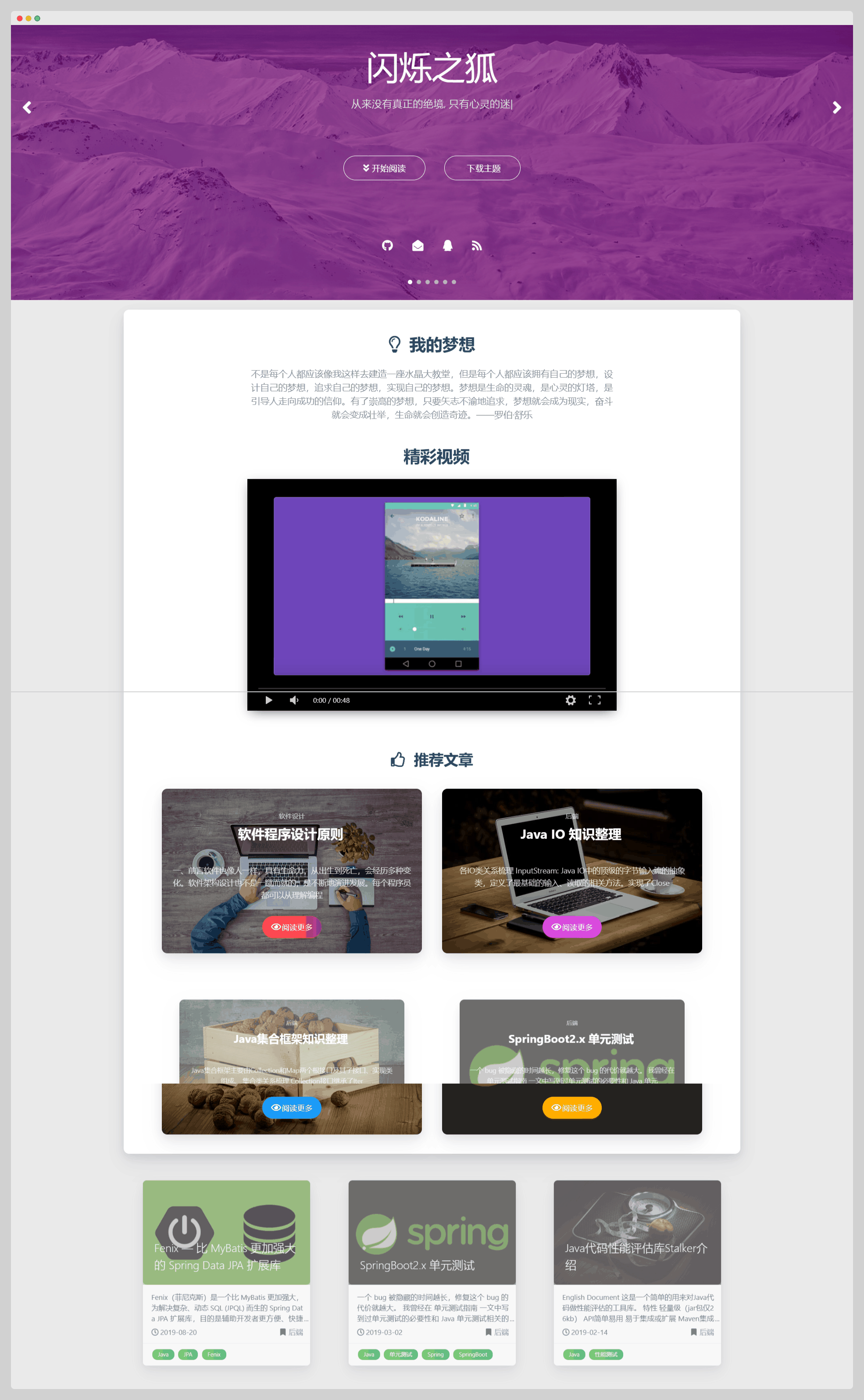 闪烁之狐主题的页面很炫,有个主屏图片文章切换,文章是卡片式的,每行3扁文章,带文章特色图片。