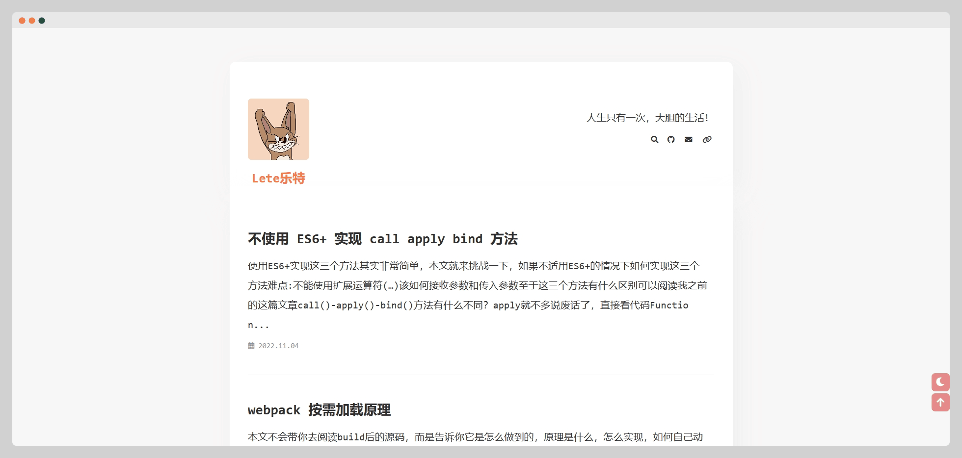 这款主题页面很炫,动画效果多,功能也很丰富,这是优点,但是这也拖慢了网页的加载速度,带宽小或者github这种就不适合使用这款主题了。