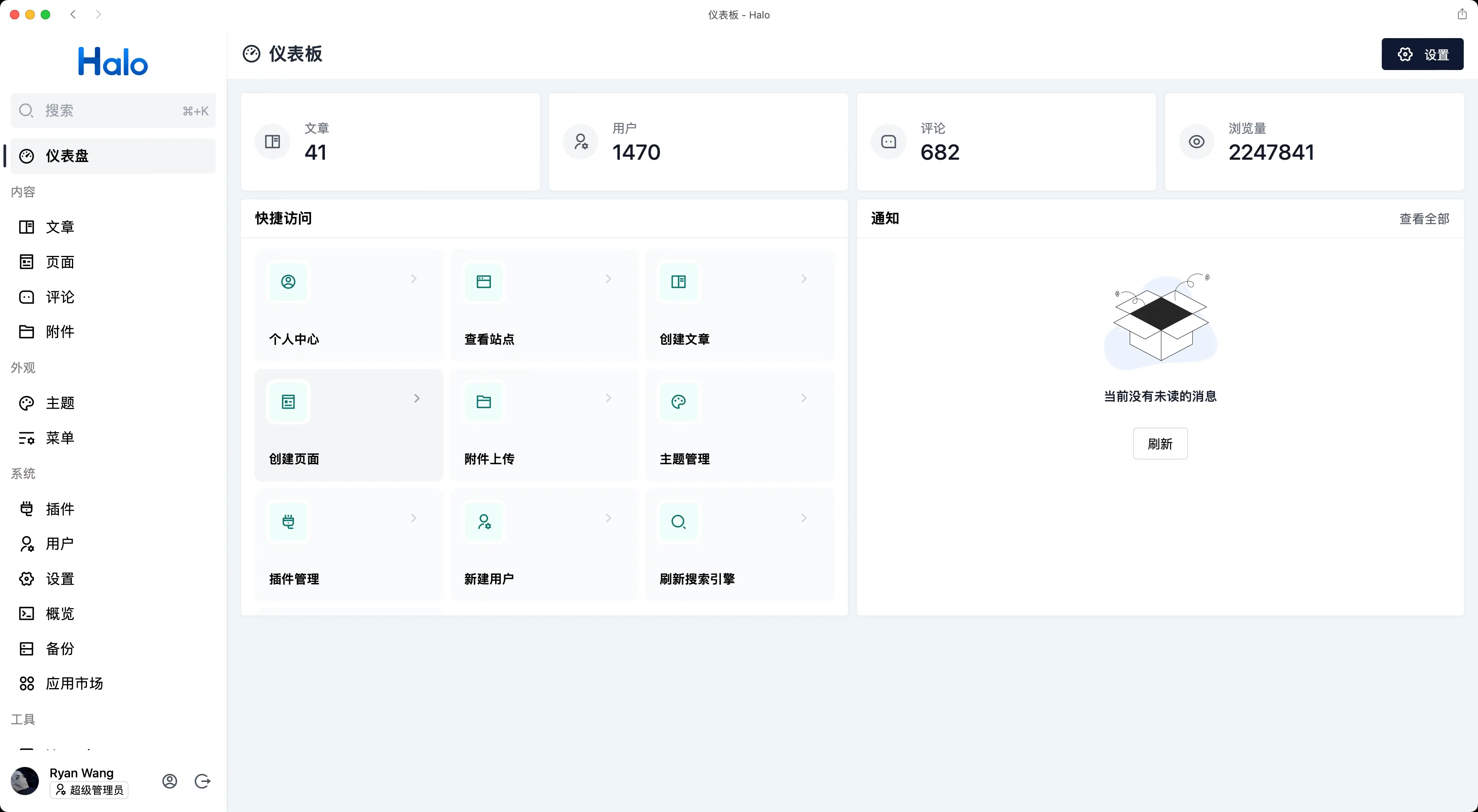 💡 Halo 是一款强大易用的开源建站工具,配合上不同的模板与插件,可以很好地帮助你构建你心中的理想站点。