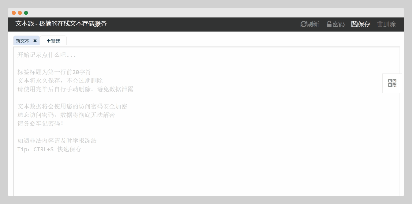 主页会提示输入后缀,也可以留白系统自动生成,相比于note.ms,支持了markdown,导入导出,设置密码,二维码分享等功能。
