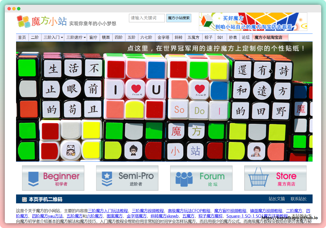 我玩魔方就是从这里学会的。