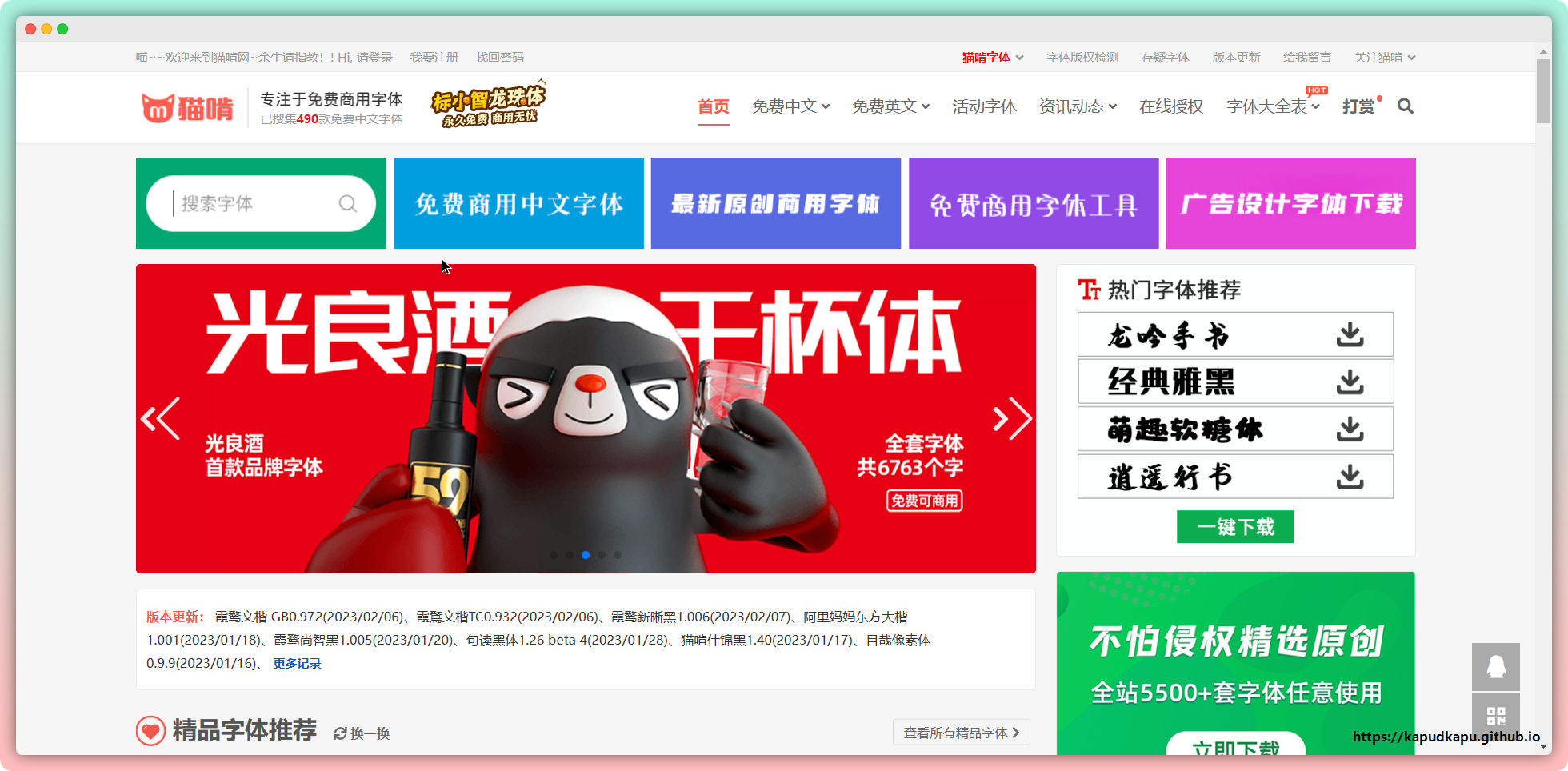 猫啃网,最新最全的可免费商用中文字体下载网站!免费下载无套路。